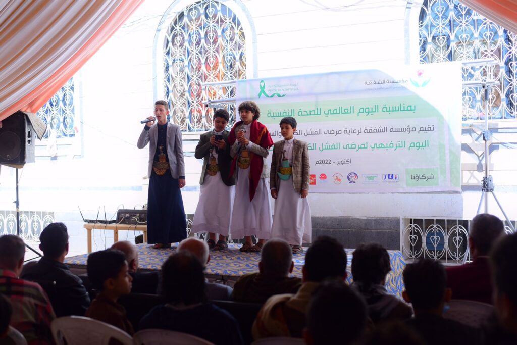نظمت مؤسسة الشفقة لرعاية مرضى الفشل الكلوي والسرطان امس بصنعاء فعالية ترفيهية نفسية للمرضى الأطفال وذويهم المقيمين بدار المؤسسة بمناسبة اليوم العالمي للصحة النفسية.