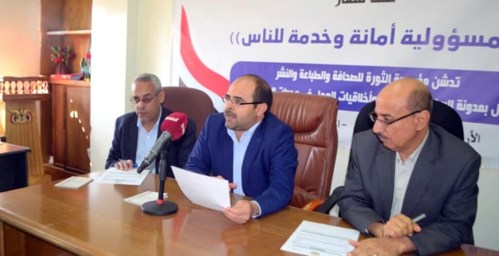 دشّنت مؤسسة الثورة للصحافة والطباعة والنشر اليوم الأربعاء ، العمل بمدونة السلوك الوظيفي وأخلاقيات العمل في ديوان عام المؤسسة وفروعها بالمحافظات.