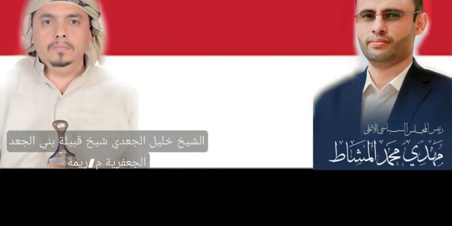 بعث الشيخ خليل إبراهيم صالح الجعدي شيخ قبيلة بني الجعد بمحافظة ريمة برقية عزاء ومواساة إلى فخامة المشير الركن مهدي المشاط رئيس المجلس السياسي الأعلى في استشهاد شقيقه مصلح المشاط متأثرا باصابات تعرض لها وهو يؤدي واجبه في الدفاع عن الوطن لترتقي روحه الطاهرة إلى بارئها بعد حياة حافلة بالعطاءات الوطنية والنضال المستمر في مواجهة العدوان واذنابه من عصابات الشر والإجرام.