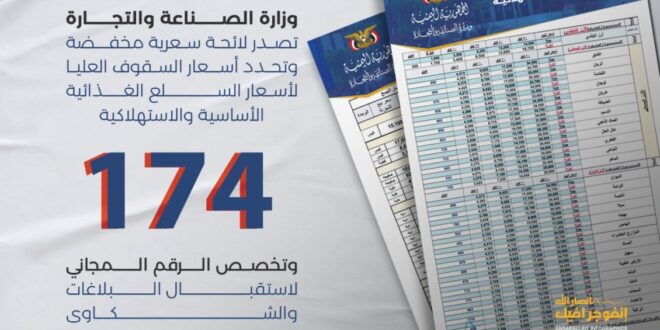أصدرت وزارة الصناعة والتجارة لائحة سعرية مخفضة وحددت أسعار السقوف العليا لأسعار السلح الغذائية الأساسية والاستهلاكية.
