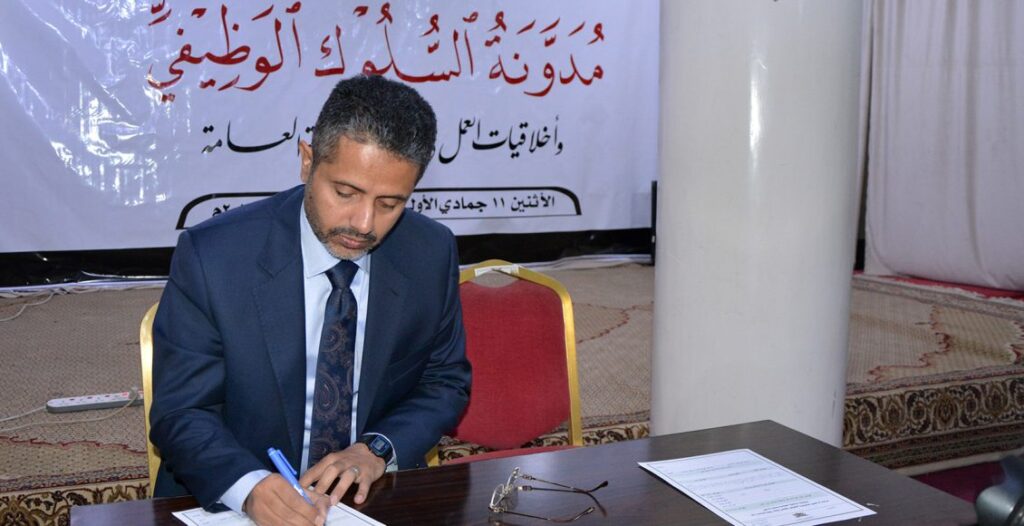 وأشار إلى أن الهدف من مدونة السلوك هو التعريف بأن الوظيفة العامة خدمة للناس وعبادة لله تعالى يجب أن يكون فيها الموظف ملتزم بالأخلاقيات الحسنة وتجسيد السلوك الأمثل .