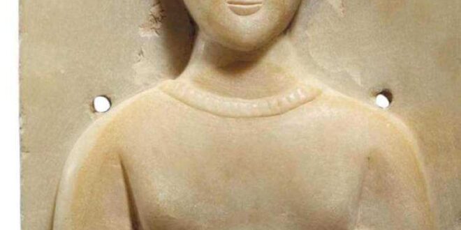وقال الناشطون الذين نشروا صورة لتلك القطعة التي تعود للقرن الأول قبل الميلاد وهي مستطيل الشكل ، منحوت بنقش بارز مع امرأة واقفة ترتدي سترة طويلة على شكل حرف A مع ياقة مهدبة ، ويداها مشبوكتان عند خصرها ، مرتدية سوارين على كل معصم ، قلبها – وجه على شكل عيون كبيرة منتفخة على شكل لوز ، التلاميذ مثقوبون بعمق ، الحاجبين أخاديد رفيعة ، الحاجب المقوس يندمج مع جسر الأنف الطويل المثلث ، بفم صغير وذقن مستدير ، من المحتمل أن يكون الشعر المنتصف في الأصل منتهية من الجبس ، مثقوبة للتثبيت فوق كل كتف