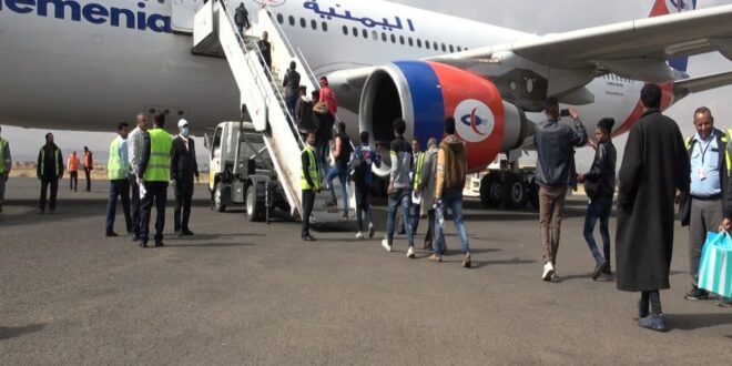 اعادت مصلحة الهجرة والجوازات والجنسية بالتعاون والتنسيق مع المنظمة الدولية للهجرة عدد (136 شخصا) من المهاجرين غير الشرعيين ينتمون إلى منطقة القرن الأفريقي عبر مطار صنعاء الدولي الى بلدانهم.
