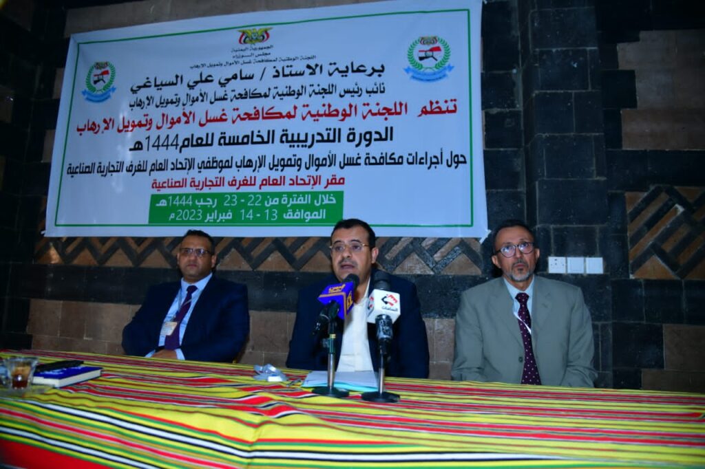 بدأت اليوم بصنعاء دورة تدريبية في مكافحة غسل الأموال وتمويل الإرهاب لموظفي الاتحاد العام للغرف التجارية الصناعية .