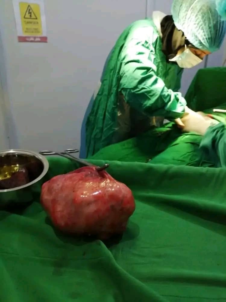 وأشارت إلى انه تبين بعد عمل الفحوصات الطبية اللازمة أن لديها ورماً ليفياً متضخماً وكان خيار العملية الجراحية هو الخيار الأنسب في مثل هذة الحالات لإزاله الورم .