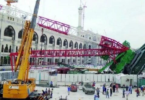 وفي 11 أيلول/ سبتمبر عام 2015، انهارت رافعة في المسجد الحرام في مكة خلال موسم الحج بسبب الرياح العاتية والأمطار الغزيرة، ما تسبب في مقتل 110 أشخاص، وإصابة 209 آخرين بينهم الكثير من الأجانب، مخلفة “تلفيات مادية” بمبنى الحرم المكي.