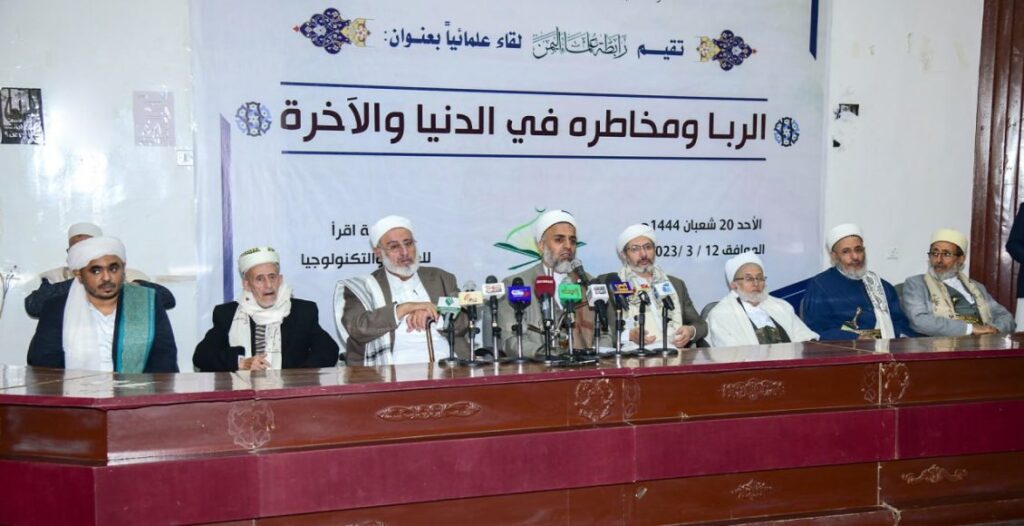 نظمّت رابطة علماء اليمن اليوم الأحد ، لقاءاً للعلماء برئاسة مفتي الديار اليمنية – رئيس الرابطة العلامة شمس الدين شرف الدين حول “الرباء ومخاطره في الدنيا والآخرة”.