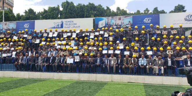 نظمت الوحدة التنفيذية للمشاريع والإنشاءات بالمؤسسة العامة للاتصالات حفل تكريم الدفعة الأولى لمعلمي الورش والمعامل ومهني إدارة المشاريع تحت شعار الرئيس الشهيد صالح الصماد (يد تبني ويد تحمي).