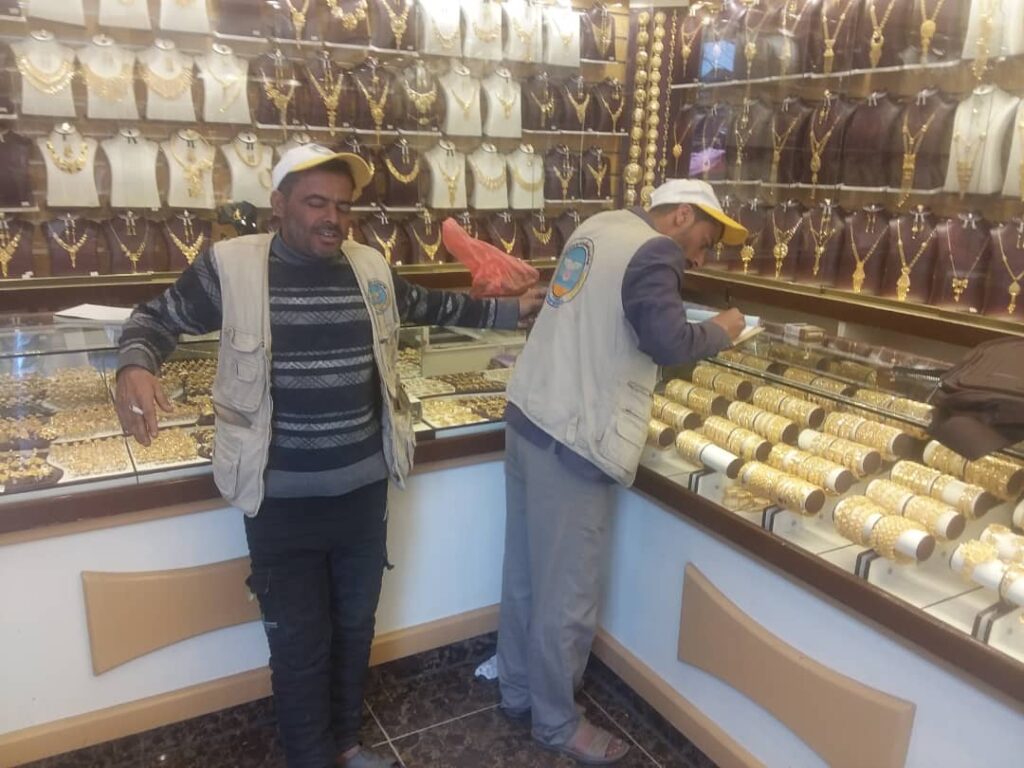 تنفذ الهيئة اليمنية للمواصفات والمقاييس وضبط الجودة حملة ميدانية للتفتيش على الموازين في ورش ومحلات بيع وشراء المصوغات الذهبية في مديرية رداع بمحافظة البيضاء .