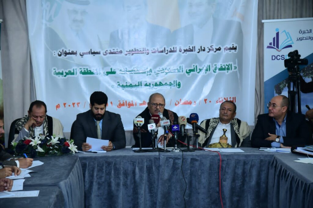 وأشار النعيمي خلال مشاركته اليوم في المنتدى السياسي الذي نظمه مركز دار الخبرة للدراسات والتطوير بعنوان: ” الاتفاق الإيراني السعودي وانغكاساته على المنطقة العربية والجمهورية اليمنية” إلى أن الاتفاق جاء كمحصلة لحالة الصمود الذي انتهجه محور المقاومة في مسار النضال والتحرر في القرار السيادي والسياسي لمواجهة الهيمنة والاستكبار الامريكي الصهيوني وأدواته في المنطقة.