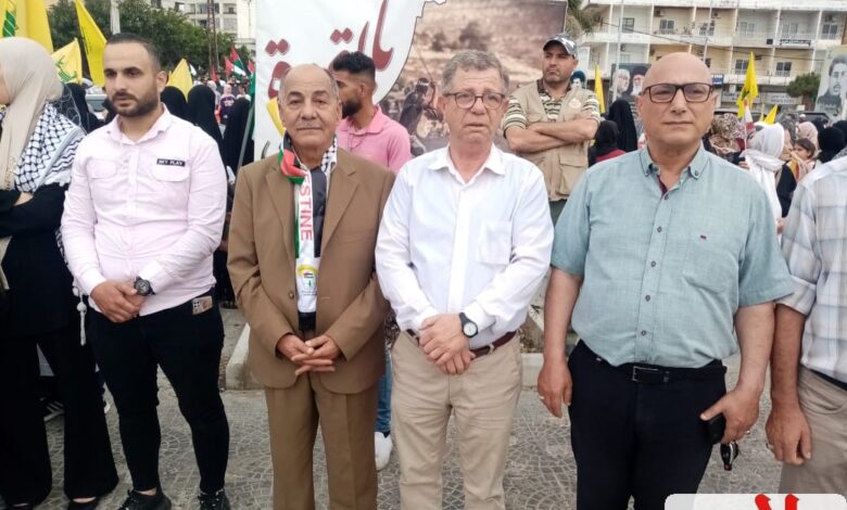 وقد أدلى الكاتب الدكتور عماد سعيد بتصريح أشار فيه بهذه الوقفة التضامنية الفلسطينية اللبنانية التي تذكرنا على الدوام بعدالة القضية الفلسطينية وحق الشعب الفلسطيني بمقاومة الاحتلال وفي، العودة إلى ارضه وقيام دولته المستقلة وعاصمتها القدس الشريف ٠