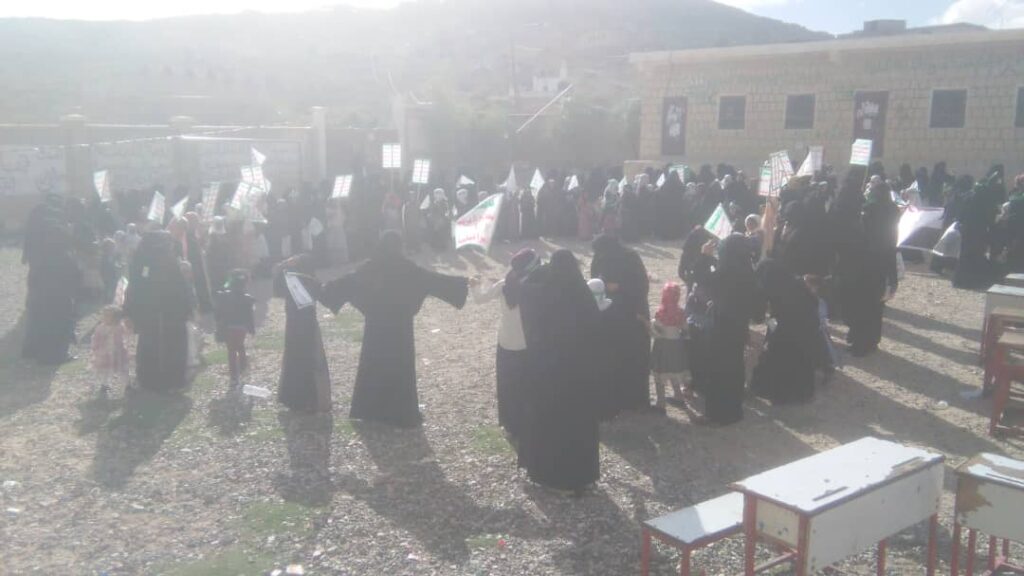 وفي الوقفة التي شاركت فيها حرائر عزلة عيال حاتم ، استنكرت المشاركات الاعتداءات التي يواصل العدو الصهيوني ارتكابها وتنفيذ مخططات التهويد والاستيطان في الأراضي الفلسطينية المحتلة وعدم تحرك الشعوب العربية والإسلامية لنصرة فلسطين والقدس.