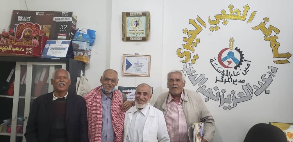 بين الاستاذ احمدالعماري رئيس جمعية المتقاعدين والدكتور عبدالعزيز نجم الدين امين عام مؤسسة رباط الخير ( مدير المركز الطبي الخيري )