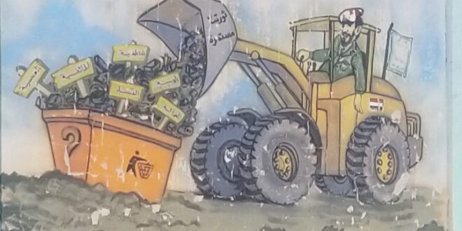 صورة كانت تمثل حلم الجميع من ثورة ٢٠١٤ حيث تقوم الثورة التي يرمز لها بهذه الصورة بالدركتر بالتخلص من الفساد والمحسوبية والمناطقيه والمذهبية والجهويه والسلاليه والشلليه والجهل والفقر والمرض والظلم والعشوائية والتخلف وغيرها الى المزبله ..من اجبر الدركتر على العودة الى اخرج كلما تخلص منه ونعثها في كل مكان بصورة ابشع مما كانت ..من يحاول سرقة الدركتر هل تم نهبه او شرائه او شراء السائق او التحكم الالكتروني به تماشيا مع التقدم التكنلوجي …سالتكم بالله يا هؤلاء أعيدوا الدركتر حقنا ودعوه يقوم بعمله كما كنا نحلم وكما يحتاج هذا الوطن ..الامراض والمخالفات التي تعوق عجلة التنمية لهذا الوطن ينبغي التخلص منها ورميها في مزابل التاريخ واعادة تزين الوطن بالمحبه والعدل والتسامح والنظام والقانون لكي نعيد تعويض ما فاتنا في ركاب الحضارة الانسانية التي كنا رواد لها ذات حكم عادل وعقول رشيده