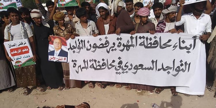 ويطمع آل سعود في المهرة من قديم وقد عندت إلى دعم على سالم البيض ضد الوحدة اليمينة مقابل أن يعطيهم أرضٍ تصبح تحت ملكهم ليطلوا منها على البحر العربي وليفصلوا ما بين اليمن وعمان، واليوم تتجدد هذه الرغبة ابتدأ بمد أنبوب عبر المهرة نحو بحر العرب لتأمين نقل إمداداتها من النفط بأقل تكلفة وتجنب المرور عبر مضيق هرمز وهو ما يرفضه أهالي المحافظة، ويرفضون التواجد السعودي على سواحل محافظتهم تحت مبررات لا يقبلونها، ويجدون أن التحالف السعودي الإماراتي انحرف عن العناوين التي رفعها وذهب لاحتلال مدينة لم يتواجد فيها الحوثي ولا أي من فلوله، لأهداف سعودية خاصة، تنتهك سيادة اليمن وسلامة أراضيه.