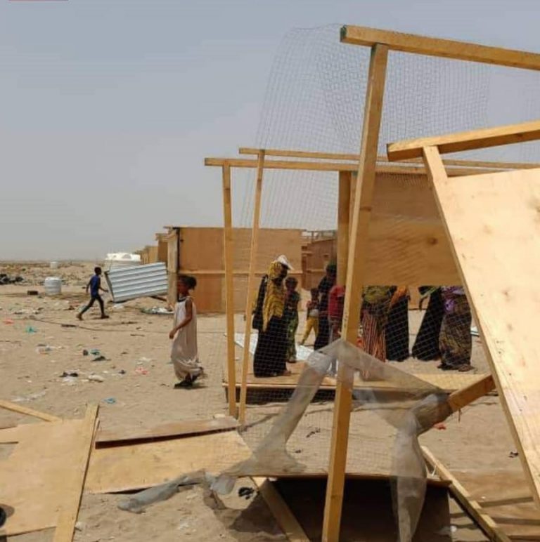 مرتزقة الامارات يدمرون مخيما للنازحين في لحج