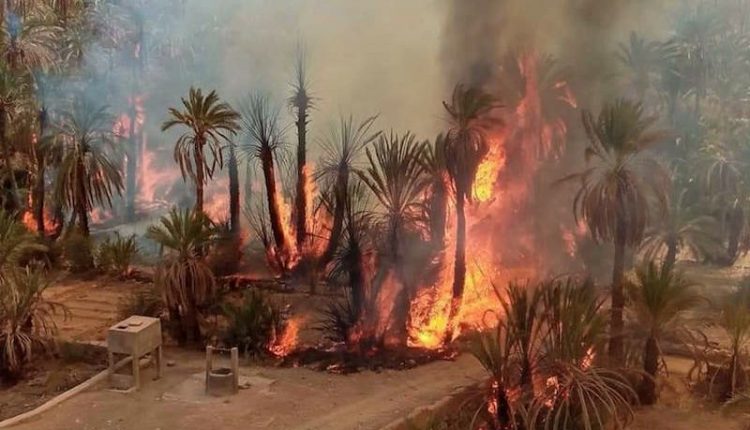 حريق هائل يلتهم العشرات من أشجار النخيل بحضرموت