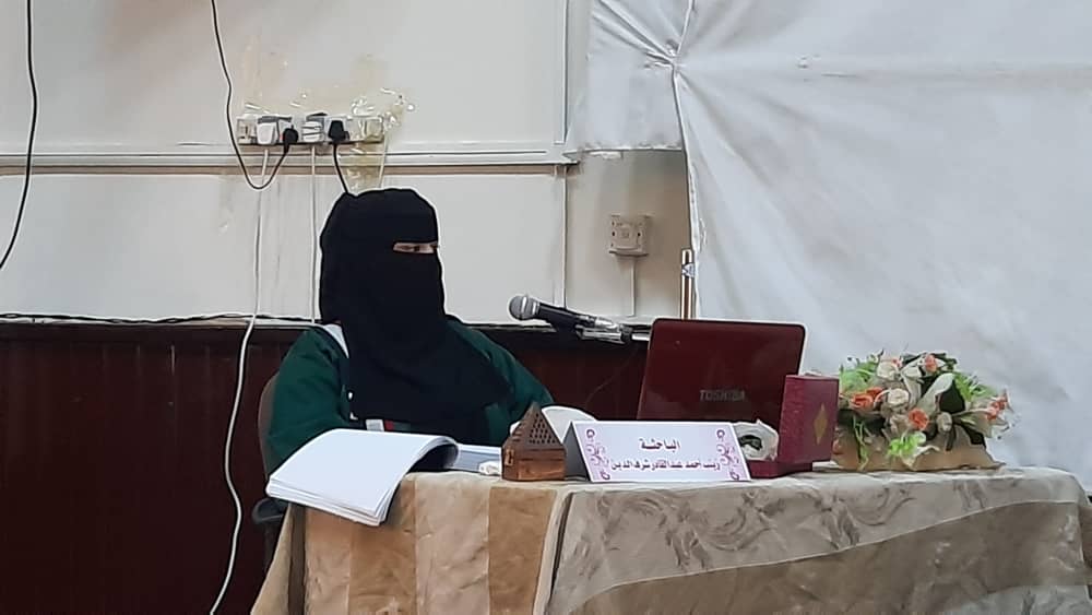 وقد تشكلت لجنة المناقشة والحكم من الأستاذة الدكتورة أمة الرزاق محمد الوشلي المشرف الرئيس على الرسالة عضوا، والأستاذ الدكتور محمد محمد عبدالله الصوفي مناقشا داخليا رئيسا للجنة، والأستاذ الدكتور أحمد عبدالله الدميني من وفي ختام المناقشة التي حضرها عدد من الأكاديميين والباحثين والمهتمين بالبحث العلمي منحت لجنة المناقشة والحكم الباحثة زينب أحمد شرف الدين درجة الدكتوراه.