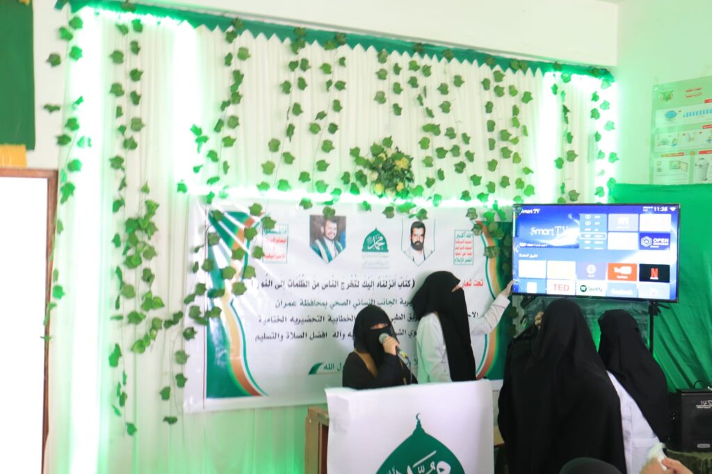نظمت اللجنة التحضيرية بالجانب الصحي النسائي بمحافظة عمران. اليوم الفعالية الخطابية التحضيرية الختامية للفريق الطبي بمناسبة ذكرى المولد النبوي الشريف على صاحبة افضل الصلاة والتسليم.