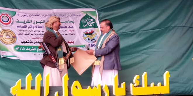 مكتب محو الاميه بمديرية شعوب يختتم فعاليات المولد النبوي الشريف