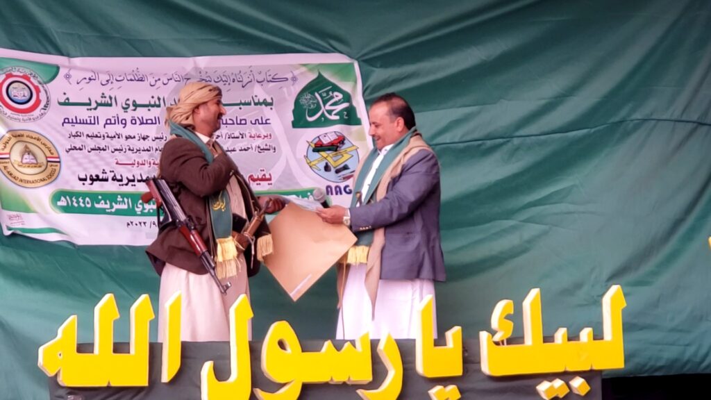 ومن خلاله تقدم مدير محو الاميه بالمديرية بمنح شهاده شكر وتقدير للشيخ أحمد عبدالملك الصماط مدير المديريه على تعاونه المستمر مع مكتب محو الاميه