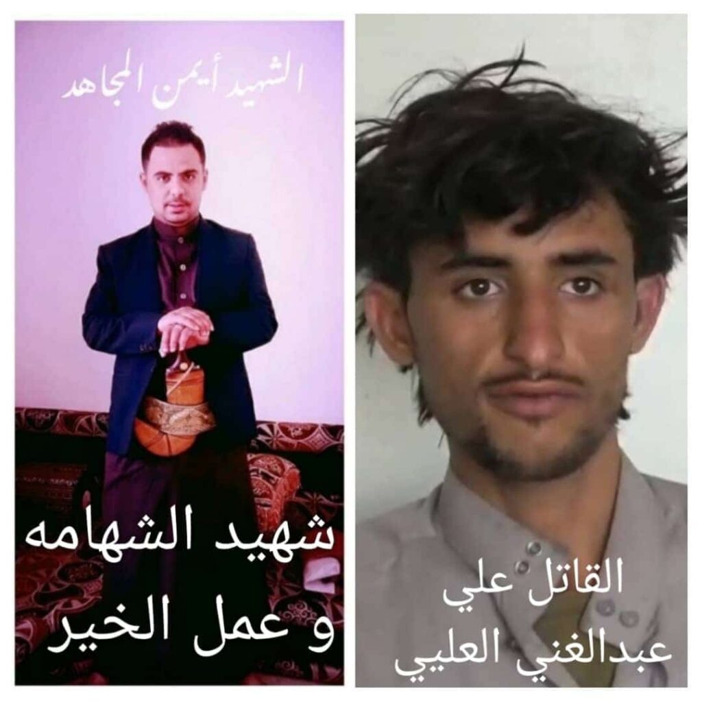 وكان الجاني قد قام بقتل أيمن المجاهد الذي قدم له معروفا ونقله بسيارته من نقطة في ذمار وفي الطريق بالقرب من بلاد الروس اطلق القاتل الرصاص على الشاب ايمن
