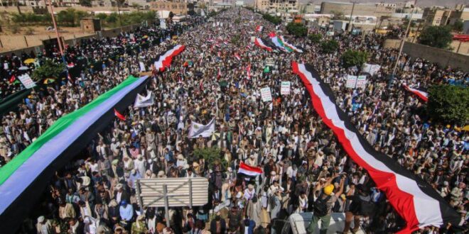 شهدت العاصمة صنعاء عصر اليوم السبت ، مسيرة جماهيرية كبرى تأييداً ودعما للعملية العسكرية البطولية “طوفان الأقصى” المباركة ضد كيان العدو الصهيوني المحتل.