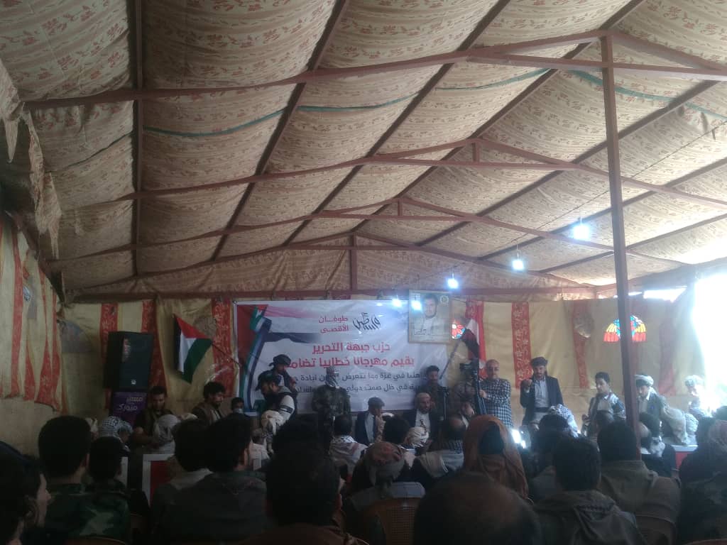 كما عبرت كلمات الشيخ ضيف الله الرسام والشيخ صالح صائل علي مشاركة اليمن في محور المقاومة وطالبوا بفتح الجبهات لليمنيبن لنصرة الشعب الفلسطيني وإشادوا بمشاركة القوات المسلحة اليمنية ووقوف القيادة الثورية والسياسية مع مظلومية الشعب الفلسطيني ،،