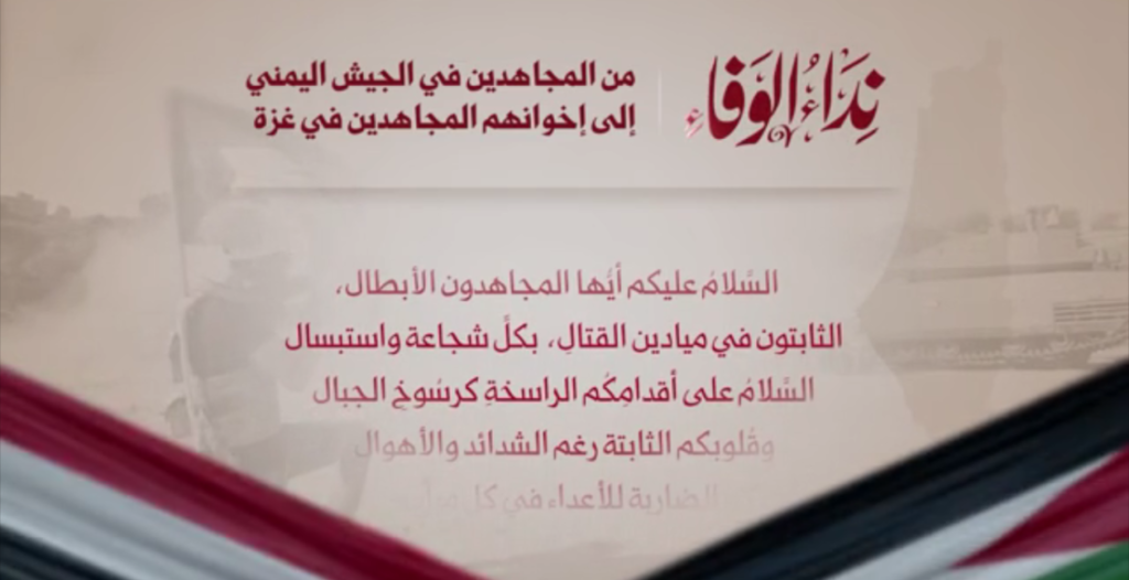 من المُجَاهِدين في الجيشِ اليمني إلى إخوانِهم المُجَاهِدين في غزَّةَ وكلّ شبرٍ من فلسطين المتراس الأول للدفاع عن الأمَّة؛