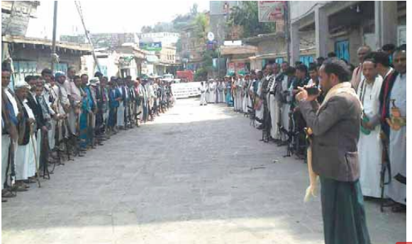 إلى ذلك نفذ أبناء ومشائخ ووجهاء مديرية كحلان الشرف بمحافظة حجة امس وقفة احتجاجية مسلحة استنكروا خلالها جرئم العدوان السعودي الأمريكي ومرتزقتهم والتأكيد على مواصلة دعم ورفد الجبهات بالمال والرجال والسلاح.