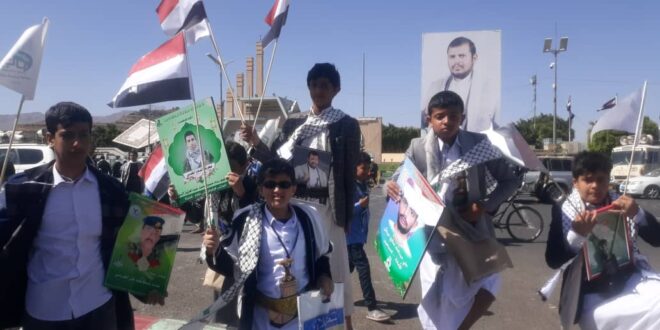 احتشد ابناء الشهداء في ميدان السبعين بامانة العاصمه ونفذوا وقفه تضمانيه ومسيره تضامنا مع اخوانهم اطفال فلسطين حيث رفعوا اعلام فلسطين واليمن وهتفوا تضامنا مع اطفال فلسطين ونددوا بالجرائم الصهيونيه التي ترتكب بحق الاطفال في غزه