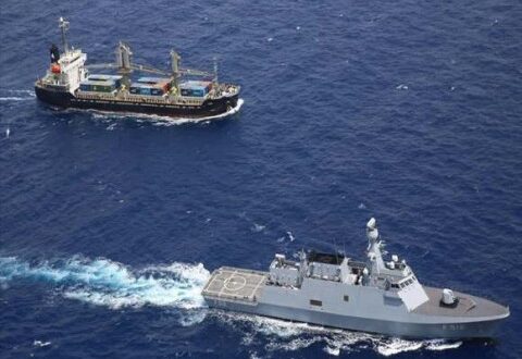 وأضافت أمبري أن طاقم السفينة لم يصب بأذى.