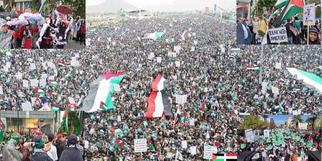 وشهدت الجمهورية اليمنية والكثير من البلدان حول العالم أمس الجمعة تظاهرات حاشدة دعماً ونصرة لقطاع غزة وأهله الذين يواجهون منذ سبعين يوماً عدواناً صهيونياً همجياً غير مسبوق على كافة المستويات ادّى حتى الان إلى استشهاد أكثر من 18 ألف مدني وإصابة أكثر من خمسين الفا أغلبهم من الأطفال والنساء وكبار السن.