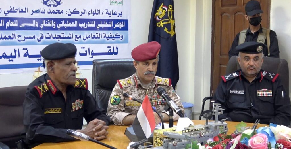 فيما ألقى قائد القوات البحرية اللواء الركن بحري محمد فضل عبدالنبي، كلمة نوه فيها بحضور وزير الدفاع بحكومة تصريف الأعمال المؤتمر التحليلي لمجمل المهام والأعمال القتالية لما نفذته القوات البحرية والدفاع الساحلي.