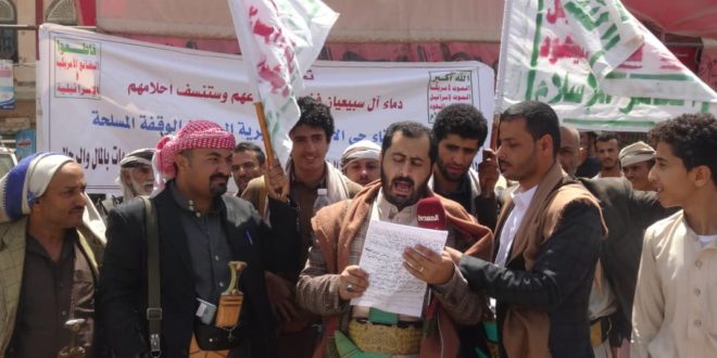 بعد ذلك تلى بيان الوقفة الشيخ طارق اسماعيل حنش ابو اسماعيل مشرف عام الأصبحي والذي أكد إن ما يقوم به العدو ومرتزقته من حزب الإفساد وغيرهم في مأرب والمحافظات المحتله من جرائم يندا لها الجبين، وآخر هذه الجرائم جريمة إبادة أسرة كاملة هي أسرة الشيخ محسن سبيعيان وقتل إخوته وأبنائه والتعدي على نسائه لهي جريمة من أبشع وأفضع وأشنع الجرائم التي تكشف وتفضح المشروع الأمريكي الإخواني الوهابي الداعشي البغيض،ومع أن هذه الجريمة الفضيعة قد هزت مشاعر جميع اليمنيين، واستنكرها كل العالم،واقشعرت منها جلود كل من يحملون بقايا إنسانية في مشاعرهم،