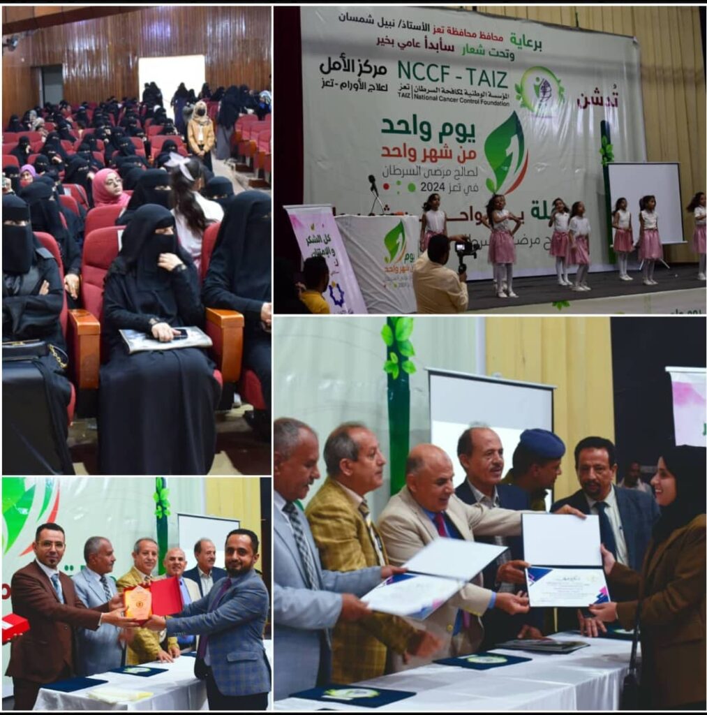 وتخلل الحفل العديد من الكلمات كان من ابرزها كلمة الأستاذ منير هائل رئيس مجلس ادارة المؤسسة الوطنية لمكافحة السرطان وكلمة وكيل المحافظة للشؤون الصحية الدكتورة ايلان عبد الحق وكلمة مدير عام المؤسسة الدكتور مختار المخلافي وتقديم فقرات فنية ومسرحية معبرة عن دعم مرضى السرطان .