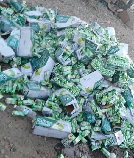 ولفت إلى أنه تم في منفذ عفار اتلاف كمية 195 كرتون وطرد مواد غذائية وصناعية متنوعة مخالفة للمواصفات القياسية المعتمدة من حيث انتهاء فتره الصلاحيه لبعض المنتجات والبعض من المنتجات الممنوع استيرادها بحسب قرار رئيس مجلس الوزراء رقم 18 لسنه 2002م ورقم 3 لسنه 2012م والبعض الاخرى مدون عليها علم اسرائيل وعلم امريكا وشعارات تتنافى مع العقيدة والاداب الاسلامية .