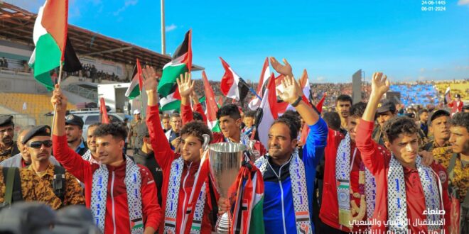 وقال “إن اليمنيين شعب ينشد السلام والحياة والإعمار، إلا أن اليهود الصهاينة يسعون وراء الدمار والخراب والقتل في غزة” .. مبيناً أن اليمنيين يحتفلون بمنتخب الناشئين وهمهم الأول القضية الفلسطينية والدفاع عنها.