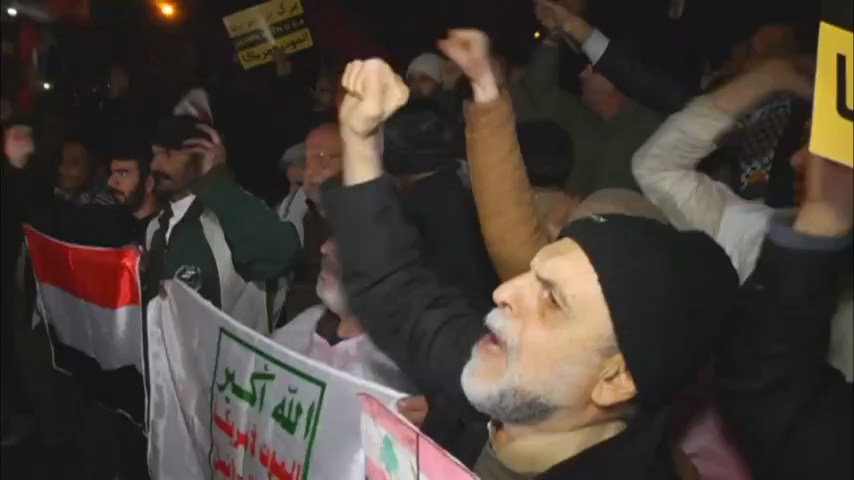 تظاهر مئات الإيرانيين أمام مقر سفارة المملكة المتحدة في طهران، تنديدًا بالعدوان الأمريكي البريطاني على اليمن.
