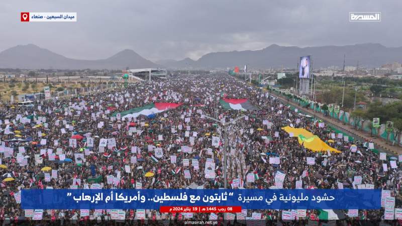 وأعلنت الجماهير المليونية الكبرى المتدفقة إلى ساحة ميدان السبعين، تلبية لدعوة السيد القائد عبدالملك بدرالدين الحوثي، تأكيدها على الثبات في الموقف، وتنديدها ورفضها للعدوان الأمريكي البريطاني على بلدنا وشعبنا.