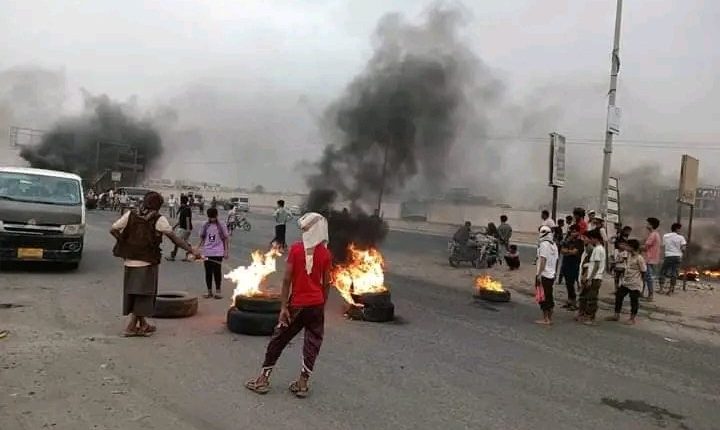 لحج ..انتفاضة غاضبة ضد مرتزقة التحالف تقطع الطريق الساحلي وتضرم النيران في شوارع الحوطة