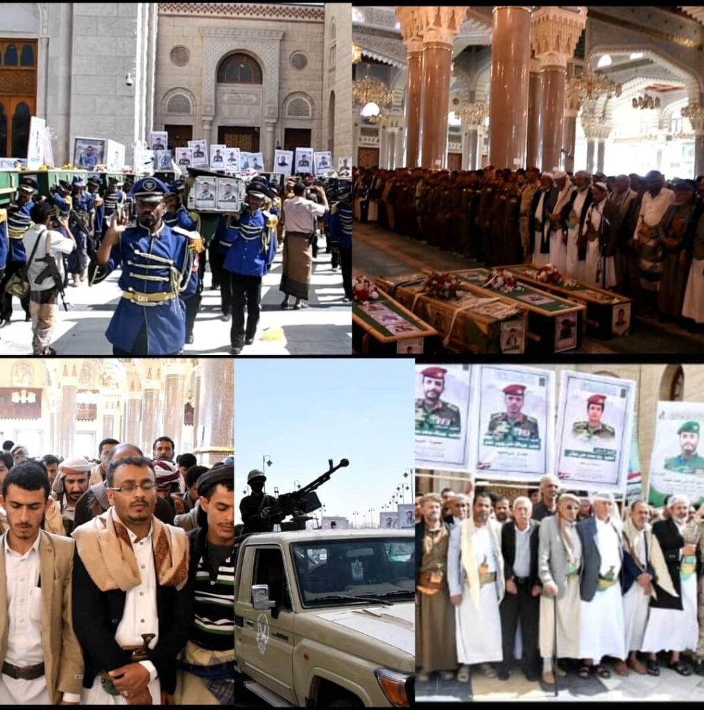 شُيعت عدد من قيادات الدولة والسلطة المحلية والمكتب التنفيذي بمحافظة شبوة بصنعاء اليوم في موكب جنائزي مهيب جثامين عدد من شهداء الوطن والقوات المسلحة والأمن اللذين استشهدوا إثر قصف العدوان الأمريكي – البريطاني.