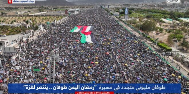 في صنعاء و15 محافظة..الملايين يشاركون في مسيرات (رمضان اليمن.. طوفان ينتصر لغزة)