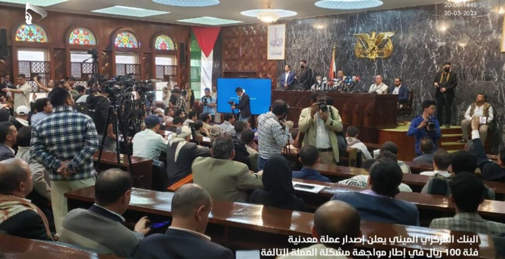 وقال :”إن البنك المركزي اليمني كمؤسسة وطنية تخدم الشعب اليمني يعلن عن إنهاء مسلسل مؤامرة دول العدوان على العملة الوطنية ويبدأ مرحلة جديدة يكون هدف البنك فيها خدمة أبناء الشعب اليمني واقتصادهم ومعيشتهم في كل المحافظات”.