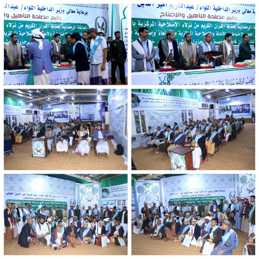 أختتمت البوم بادارة الاصلاحية المركزية بأمانة العاصمة مسابقة القرآن الكريم ل 42 حافظاً من نزلاء الاصلاحية المركزية والتي نظمتها مصلحة التأهيل والإصلاح برعاية وزير الداخلية.
