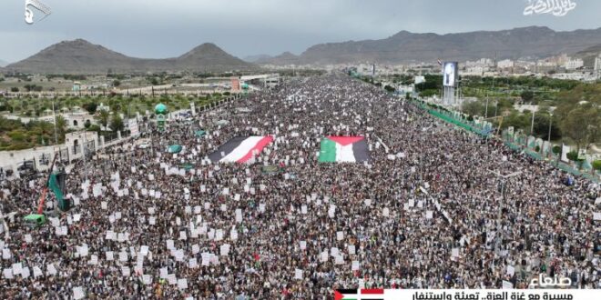 شهدت ساحة ميدان السبعين بالعاصمة صنعاء وساحات عموم المحافظات اليمنية، خروج مليوني في تظاهرات وحشود متجددة تضامناً مع الشعب الفلسطيني ، واحتجاجاً على الإبادة الجماعية التي يمارسها الاحتلال الإسرائيلي تحت شعار “مع غزة العزة.. تعبئة واستنفار”.