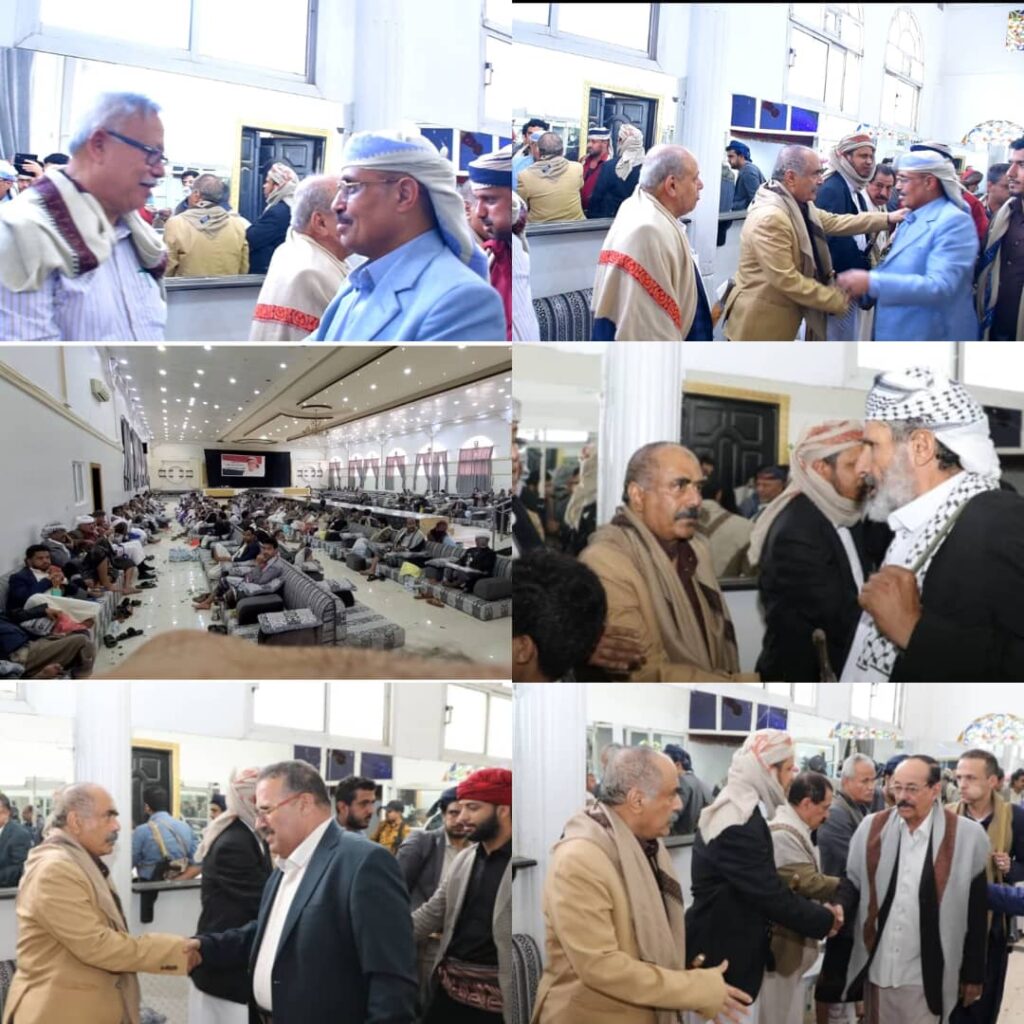 حيث استقبل رئيس حكومة تصريف الأعمال الدكتور عبدالعزيز صالح بن حبتور، وزير التعليم الفني والتدريب المهني غازي الأحول ومحافظ شبوة اللواء الركن عوض محمد بن فريد العولقي اليوم، جموع المعزين في وفاة فقيد الوطن المناضل الوحدوي أحمد مساعد حسين العولقي في العاصمة صنعاء
