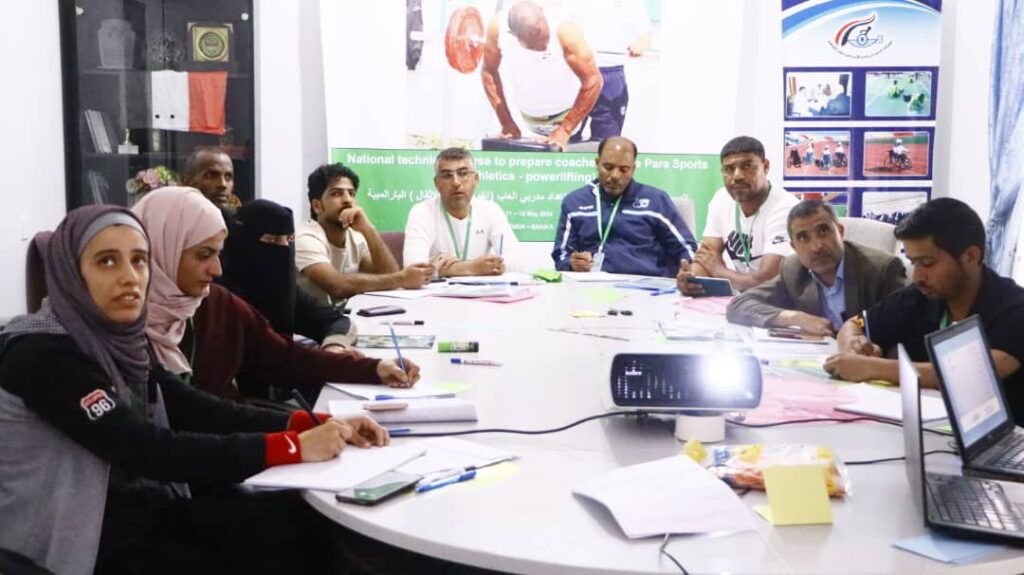 نظمت اللجنة البارالمبية اليمنية اليوم السبت 11/5/2024م الدورة التدريبية الوطنية الفنية لإعداد مدربي ألعاب (القوى – ورفع الأثقال) البارالمبية بمشاركة 9 متدربين من محافظات (الأمانة – وحضرموت – وذمار) والتي ستستمر حتى الـــــ 15 من الشهر الجاري بدعم من اللجنة البارالمبية الدولية برنامج تطوير اللجان البارالمبية الوطنية.