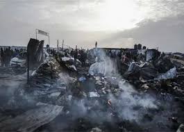وأظهرت اللقطات التي حصلت عليها الشبكة الأميركية مساحاتٍ شاسعة من المخيم في رفح بعدما اشتعلت فيها النيران، إذ حاول عشرات الرجال والنساء والأطفال بشكلٍ محموم إيجاد ملجأ من الهجوم الليلي. كما شوهدت جثثٌ محترقة، بما في ذلك جثث أطفال، يمكن رؤيتها وهي تُنتشل من قبل رجال الإنقاذ من بين الحطام.