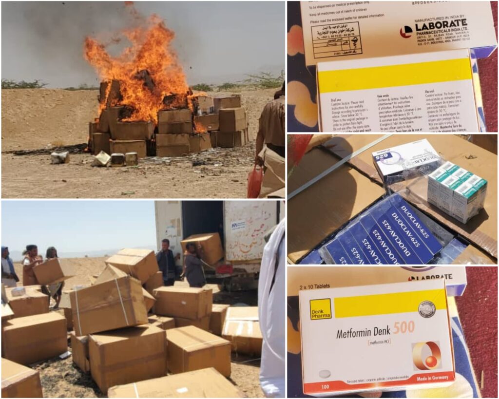 وأوضح نائب مدير المركز محمد يحيى شيبان، ل (سبأ)، أن الكمية التي تم إتلافها شملت 56 كرتوناً منتهي الصلاحية منها 47 كرتون مضاد حيوي وسبعة كراتين قطرة عيون وأنف واثنين كراتين أدوية سكري.